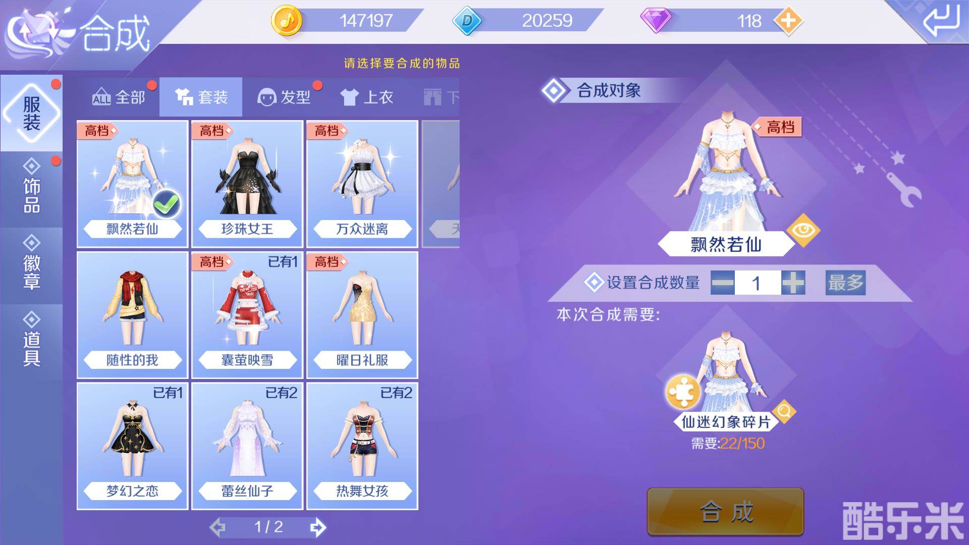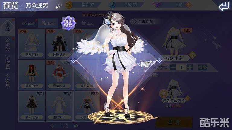 炫舞手游高档套装万众迷离:万众迷离套装需要乐之灵域碎片180个即可合成!!发型华丽落幕需要乐之灵域碎片60个!!!