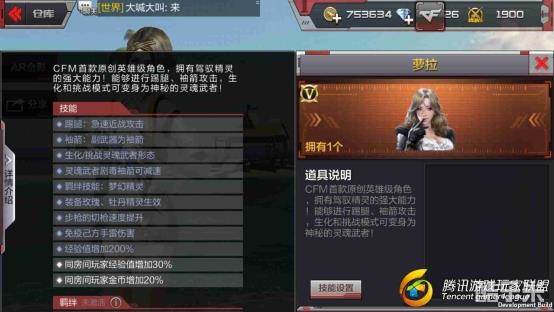 作为CFM首款英雄级角色的萝拉性能爆表,拥有踢腿、袖箭、生化/挑战灵魂武者形态、灵魂武者剧毒袖箭可减速、羁绊技能、装备玫瑰、牡丹精灵生效、步枪的切枪速度提升、免疫己方手雷、经验值增加200%、同房间玩家经验值增加30%、同房间玩家经验值增加20%等11项技能,总体表现来说还是非常惊艳的,萝拉的表现究竟让我们在新版本中拭目以待。