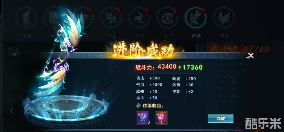 (3)侍武进阶成功后,将获得更炫更酷的外型和更加强大的属性。