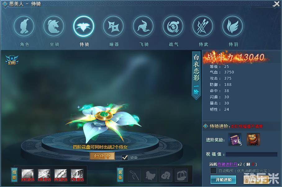 (3)侍骑的阶数越高,可以习得的技能越多;