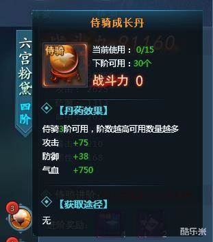 侍骑达到3阶后,将可以喂食成长丹,成长丹可以增加侍骑的进阶属性;