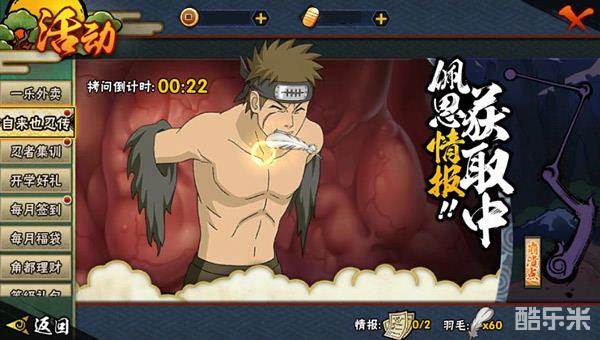 获取情报:在本关卡中,玩家需要消耗羽毛、激活光圈来拷问雨忍,俘虏崩溃后则可成功拷问出一份情报,收集2份情报即可解锁挑战任务。小伙伴们可以在冒险副本、精英副本和小队突袭中获取羽毛,30片羽毛即可兑换一次拷问机会。2份情报全部集齐后大家还需要跨越小南的阻拦,完成一场师徒对战。