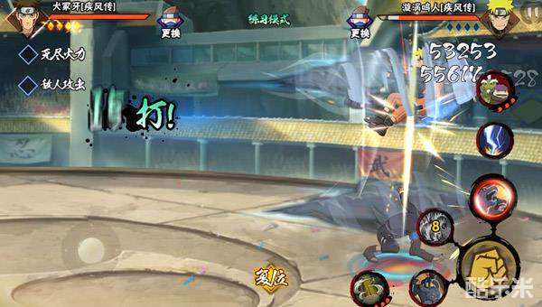 从平A分步解析可以看出,牙主要会在2A时向中距离位移,3A会回撤到2A位移起点,4A再向前约5个身位进行攻击。可以说这一样一来,疾风牙的走位能力非常强,一套平A推下来,可以覆盖决斗场3/4范围,可以利用普攻特性进行墙角普攻反向攻击,这将是火影手游未来会重点发展的技巧方向之一。