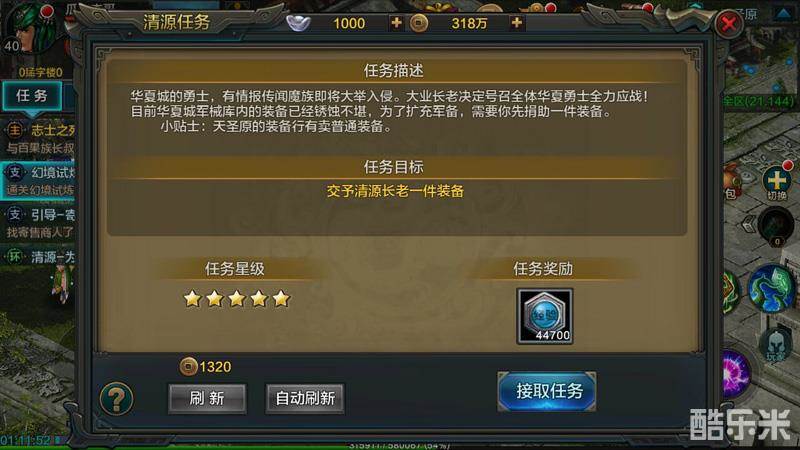 参与日常活动任务还可以获得活跃值宝箱,日常活动任务刷经验推荐:清源任务、令牌发布和接取、降妖伏魔、组队副本和女娲试练。清源任务不要一次性做完五环,尽量等到级别高了再去做,在做的时候一定要记得刷出五星,在前期刷五星用到的铜钱非常少,而且很容易就能刷到五星。
