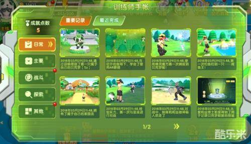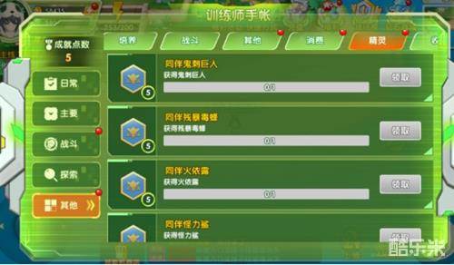 每当训练师完成一项任务、解锁剧情、完成挑战等触发事件时,均可以获得训练成就,每完成一项可以获得1个成就点数。基于许多小伙伴还比较懵懂?嗯,好的,那小编就举个栗子,新手训练师任务中战胜1号路的慕斯与奥多,给精灵回忆技能或技能机5次,进行30次金币投资研究,获得物攻种族100以上精灵5只等均可获得成就点奖励。