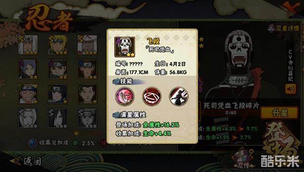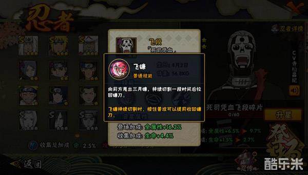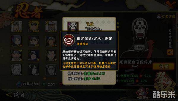 3. 秘卷技能:飞段【死司凭血】的格斗机制较为符合技能消耗型忍者的定位,所以限制走位型或起手型秘卷技能都可以和他搭配打出较好的效果。