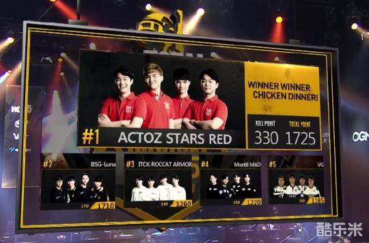 第一名:ACTOZ_R战队;第二名:BSG战队;第三名:ARMOR战队。