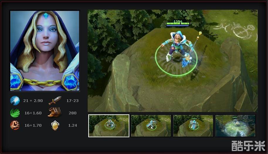 上图所示是水晶室女的成长优势和3d截图,模型做的中规中矩,属性成长力量和敏捷偏低,智力成长较为优秀,确保了蓝量的充足,应该说这样的成长算是一个优秀的远程酱油体质。