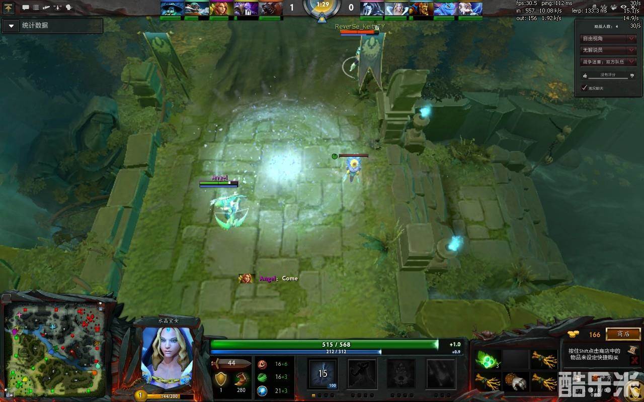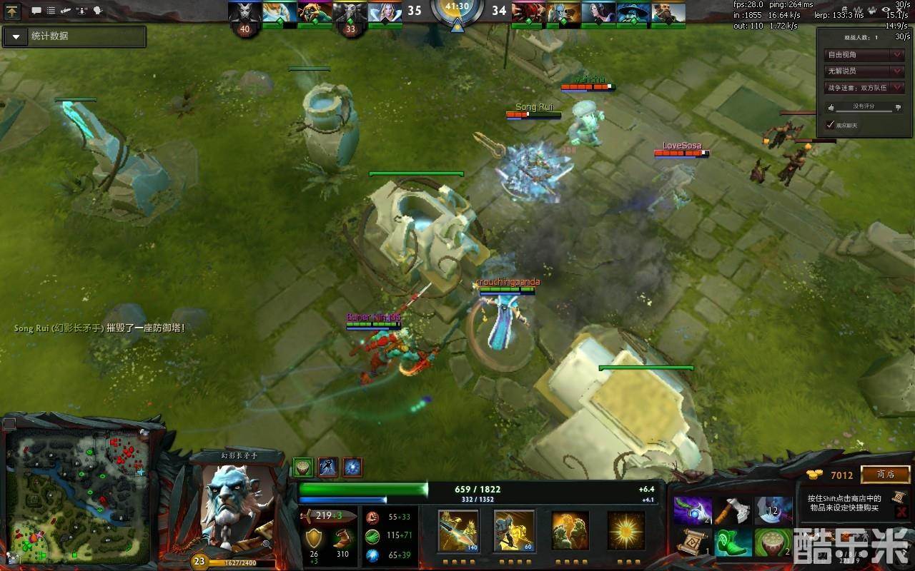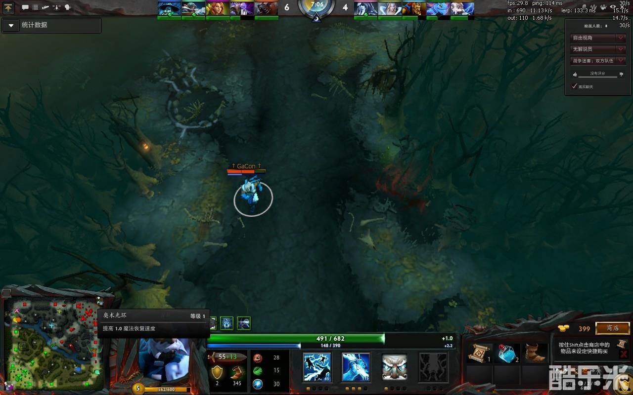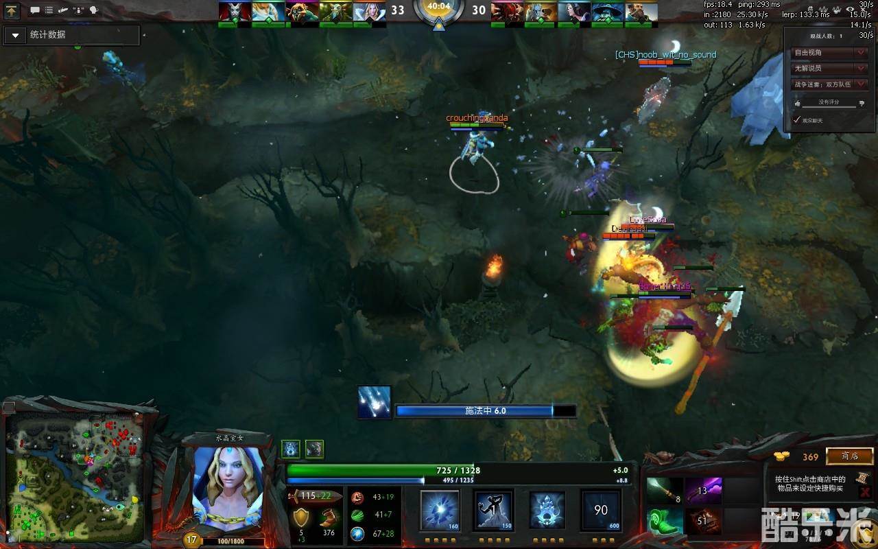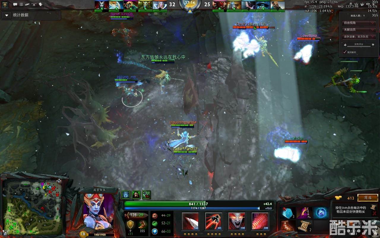 该图中的冰女躲了一个高坡视野放大,但是对面的英雄都出到了bkb,很尴尬没有什么输出,如果对面没有开启bkb该次放大应该起到良好的效果。