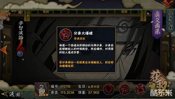 鼬的普通攻击一共有五次,最后一次有攻击特效释放豪火球术。一技能叫做天照,释放之后有一定后摇时间,命中对手后会制造长时间浮空。二技能叫做分身大爆破,向前快速释放分身术,若没有命中则会向反方向缓慢返回,命中后会造成长时间浮空。奥义技能叫做月读,是一个全屏范围的奥义技能。推荐在命中对手技能之后用普通攻击进行攻击,将伤害进行最大化。可以在释放月读的时候先放分身大爆破,这样同时命中会使释放奥义技能之后有一个奥义点。