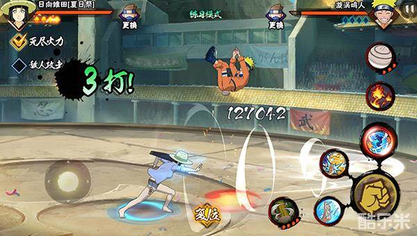 普通攻击:雏田的普通攻击分为五段,但是进入双狮拳状态后的普通攻击分为三段并且拥有着高额的伤害。雏田的普通攻击前摇很短非常适用于起手,但是进入双狮拳状态后的普通攻击前摇较长。所以各位小伙伴要适当的运用雏田的普通攻击。
