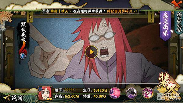 奥义技能―爆裂·香水连击:后跃并向前方扔出大量香水爆炸符,香燐落地后便引爆爆炸符对敌方忍者造成高额的伤害并击飞。