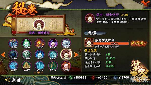 前面我们已经提到,宇智波止水在战斗中拥有不错的连招能力,但想要在战斗中不受阻拦的移动到敌人身边,我们必须借助秘卷技能“禁术·阴愈伤灭”的协作。该秘卷可以让我们在战斗中免疫控制,并小幅度提升我们的移动速度,让我们在战斗中更为灵活。
