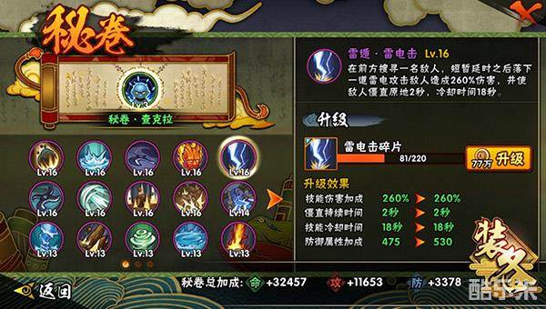 雷电击秘卷是在前方搜寻敌人,随后落下一道雷电对敌人造成伤害并且使敌人僵直在原地。雷电击秘卷的等级越高给予对手的僵直时间越高。