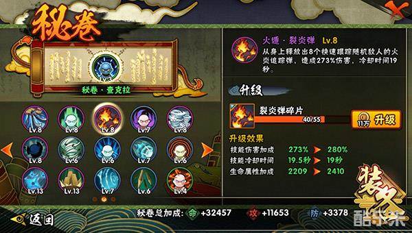 推荐理由:之前说过日向雏田【疾风传】在决斗场上的技能以及对决突进类型忍者的一些劣势,所以日向雏田技能的命中率则成了影响输赢的重要因素。为了提升技能的命中率,我们在决斗场上可以考虑使用这种范围型跟踪型的秘卷。既可以开局对决时释放,也可以在敌人使用替身之后的技能真空期释放,给予敌人硬直反打敌人一套。另外,裂炎弹尽量在敌人战立状态下释放,因为敌人浮空之后释放的裂炎弹会因为高度不够,造成追踪弹颗数相应减少。