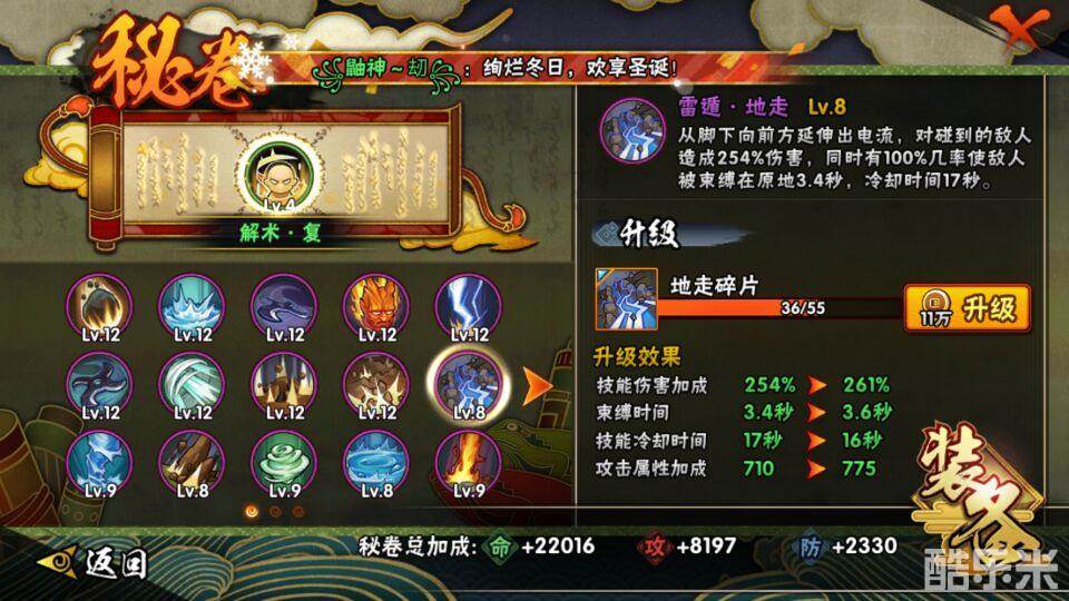 推荐密卷—雷遁·地走:使用密卷放出一横雷电对敌方忍者进行攻击,若命中该目标将百分之百禁锢目标使敌人移动不了。该密卷的可玩性很高适合很多忍者,该密卷是一个起手很强的密卷【ps:对空中忍者没什么作用】若命中敌人就可以掌握主动,被动情况下反手也可以到达拖时间的效果。这个密卷有利也有弊大家要考虑清楚再使用。