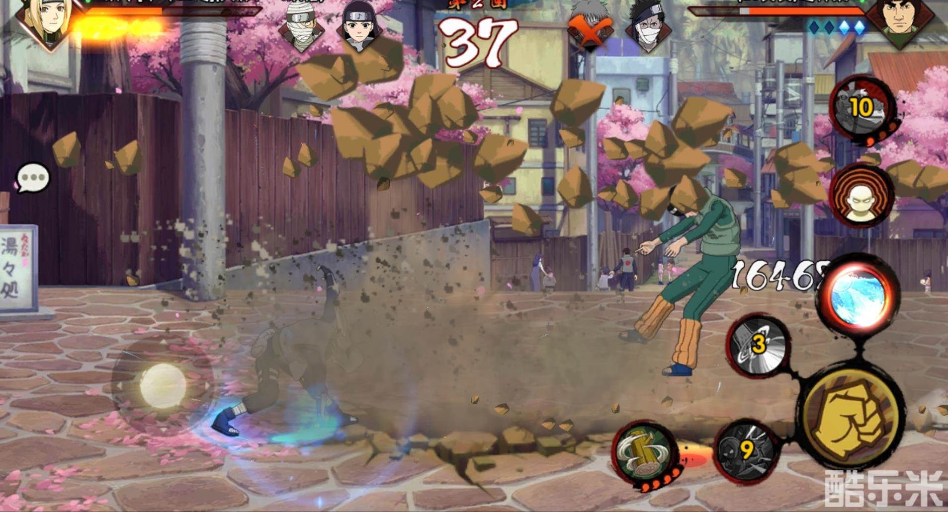 CD10秒 。将查克拉汇聚在手上迅速燃烧后爆发,向地面挥出强力的重击,随后使用重拳将岩石击碎。X轴半个屏幕的攻击范围,可用来扫地,地面砸起的岩石也可以击中空中的忍者,怪力通常作为后续的连招。