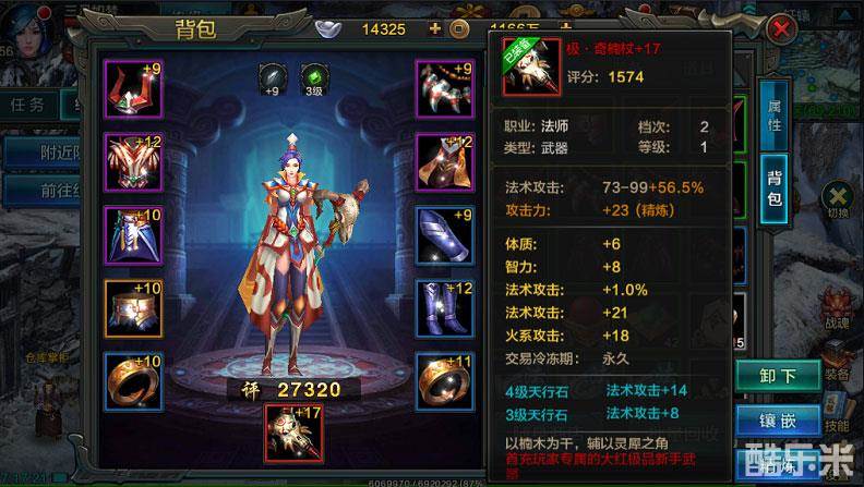 职业装备属性:法师装备属性首选智力,这是每件装备所必须要有的属性。攻击类装备的完美属性是:智力+法术攻击百分比+法术攻击+法术暴击百分比+火系攻击或者冰系攻击。防具类装备的属性相对较多,除了智力必选外,体质、物防、法防、生命、命中等都可以选择。