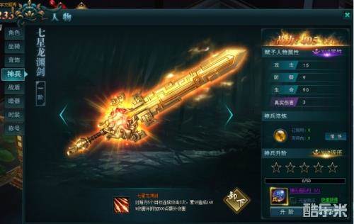 1. 完成36级主线任务开启神兵系统,并获得第一把神兵:七星龙渊剑