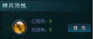 1.通过服用神兵淬炼丹可提升神兵属性,每颗神兵淬炼丹可为神兵带来固定属性值加成