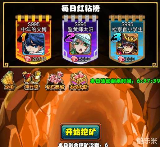 玩家可以在进行矿堆选择的时候,选择奖励是红钻进行挖矿。