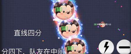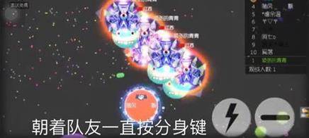 给队友吐一些球,原地分身两下,如果队友比较小,可以再分身一下,再直接交叉不停按分身,怼到队友肚子里。