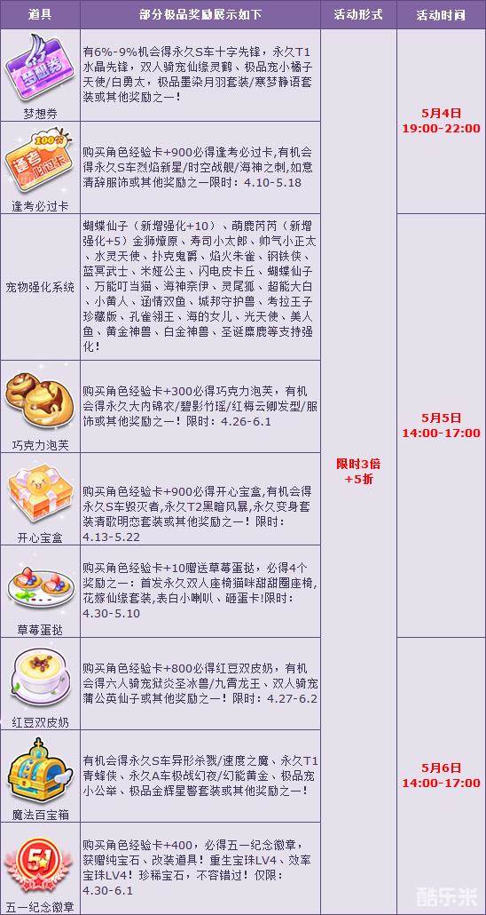 5月4日-5月6日期间,宝箱多倍限时开启,每天都有2-4款宝箱开启限时3倍+5折,参与就有机会赢取超值大奖,千万不要错过哦!