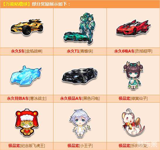 5月4日起,【万能咕噜球】更新,仅需2Q币就有4.1%~6.8%的几率获得永久S【金焰战神】、永久T1【青蜂侠】、永久A车【烈焰铠甲】/【寒冰战士】/【黑色闪电】、极品宠物【绿冥仙子】/【小王子】/【纪念版飞虎王】/【乐师希瑞】或其他奖励之一!