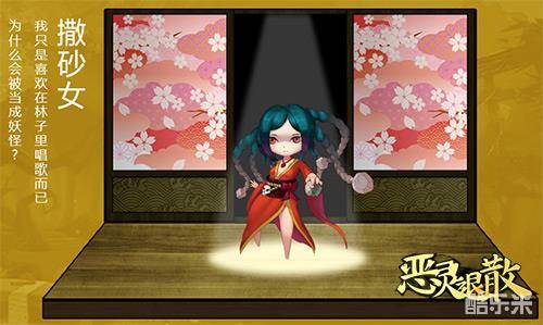 《恶灵退散》里的撒砂女告别了传统的“婆婆”形象,变成了天真无邪的少女,喜欢在竹林里唱歌。当遇到路人经过的时候,就会扬起沙尘捉弄他们,所以被人们传为可怕的妖怪。撒砂女属于强力输出型式神,她的沙刺技能能够对当前目标造成213%的伤害。