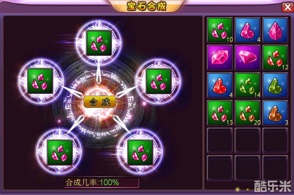 成功几率,放置的宝石越多,合成成功几率越高,最多可以放置5颗宝石。