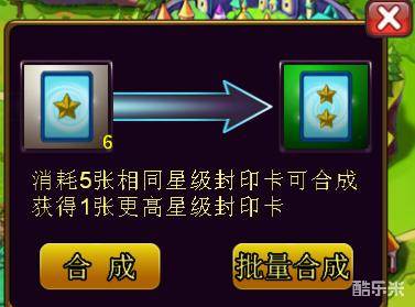封印卡用于捕捉精灵。封印卡的等级越高可捕捉高级精灵的成功率越大。低级封印卡可以提升封印卡的合成效果,5张封印卡可以合成更高一级的封印卡,最高5级。