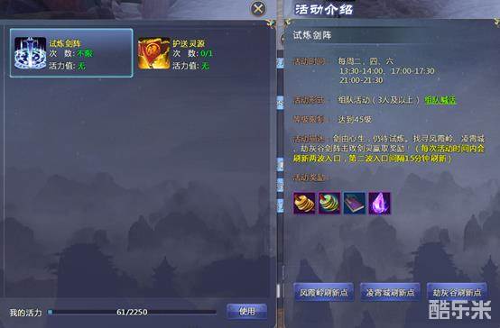 这个有具体介绍,就不再赘言。重点是职业,试练剑阵并不是随意组队就可以进入的。每次活动会指定一个职业为试练弟子,这个队伍必须有该职业且是队长,方有参与资格。仅仅参与资格还不够,还需要与同样有资格的队伍争夺入门的入场券,这个纯靠运气和手速。