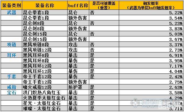 2.首饰的buff触发率也与段位无关(起码对于8段和12段是适用的),项链攻击buff固定3%左右,耳环暴击buff固定7%暴伤buff4%左右。