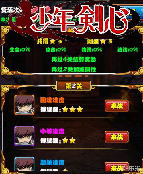 在地府里面的每一关可是有分难度的,分别为简单,中等,难难等三种不同难度的boss等玩家来挑战,当然难度越高越多的星星数就越多,得到的星星可以在地府里面兑换属性,让玩家大大增加实力。而玩家每天有3次复活次数,这得玩家不仅准备好的阵容上,还需要根据每一关的boss选择好难度和调好武士的站位。