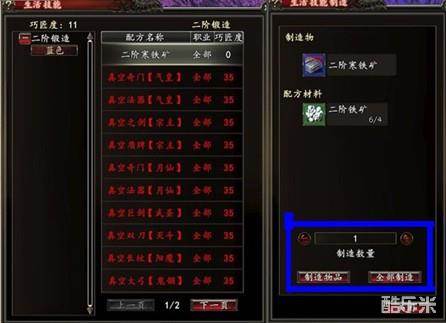 选择需要制造的物品,可选择将制造一件物品,也可按照自己需要制造的数量选择数字,还可以选择将现有的材料全部制造。