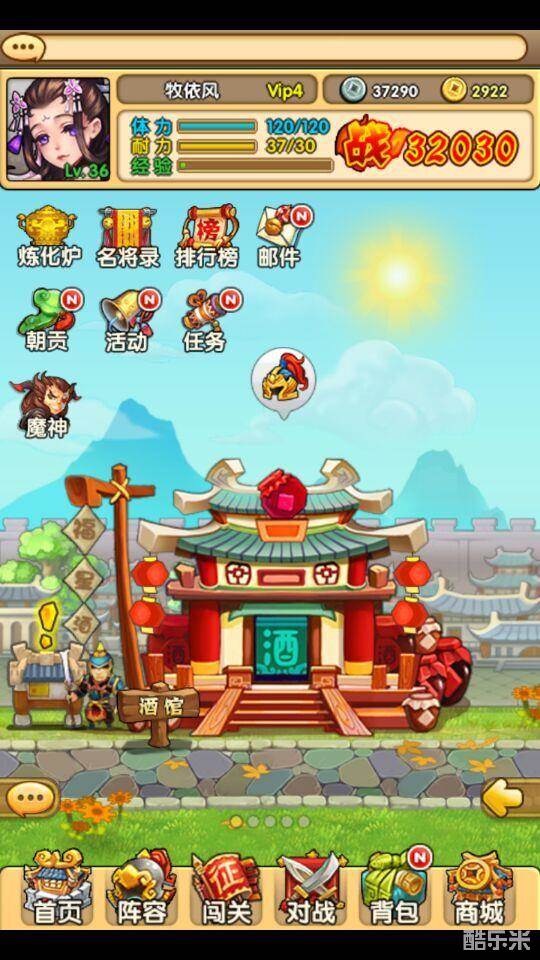 酒馆是玩家招募武将的地方,以酒会友,玩家通过请酒的方式来吸引各路英雄的投奔。主公等级1级的时候,点击主页界面的酒馆,可进入酒馆招募界面。酒馆界面有三个标签组成,分别是:招募、武将、信物。