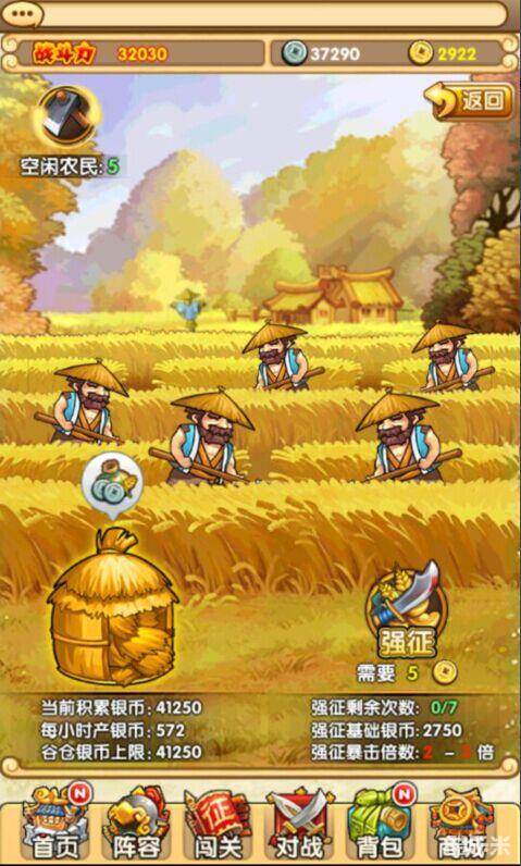免费征收次数为5; 强征初始次数为2,VIP等级越高可强征的次数越高。