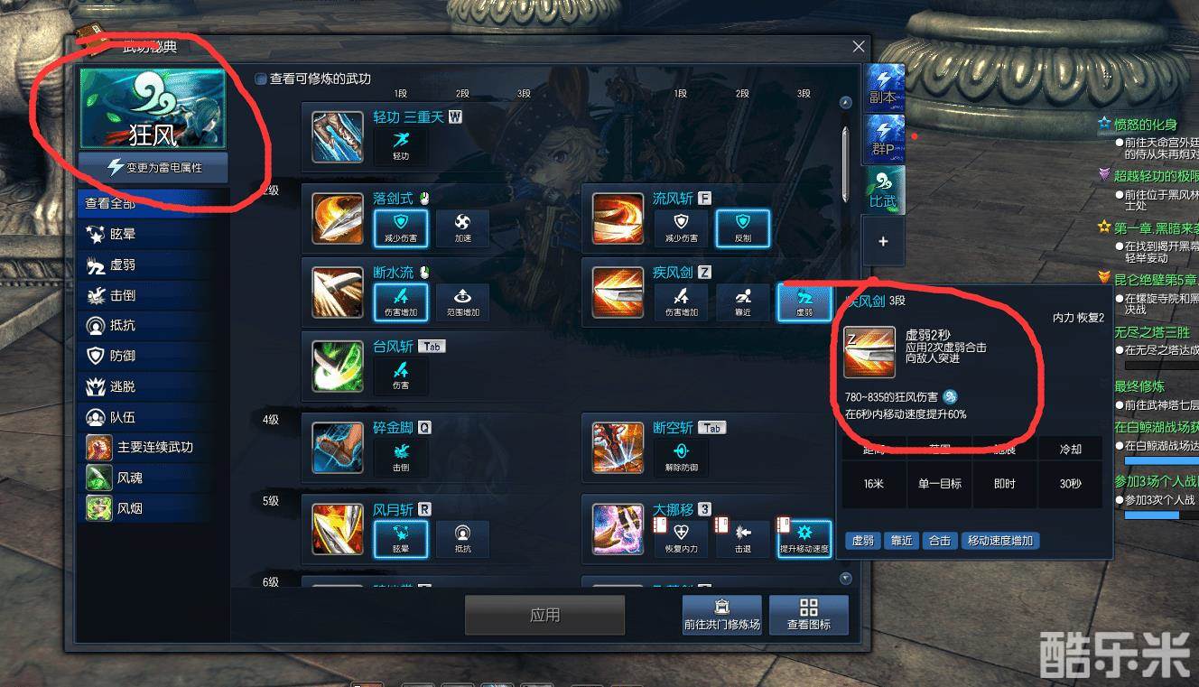 选择风系修炼时,追风剑具有的虚弱分支也将是一种全新的思路。一闪打法并非只是强打跑路换伤害,面对秒交TAB来针对强打伤害的对手,运用虚弱追风剑可以在倒地流光一闪后接上追风剑压起身再接3闪,同样能打出和卡刀一样的高伤害。