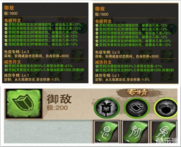 御龙,如果你选择培养御敌,免疫和减伤一定要选,