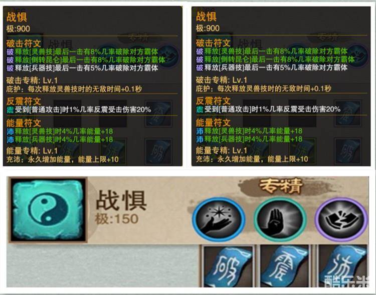 游戏为了我们提供了“武威、御敌、战惧”3种符石。每种符石都有自己响应的专精属性。