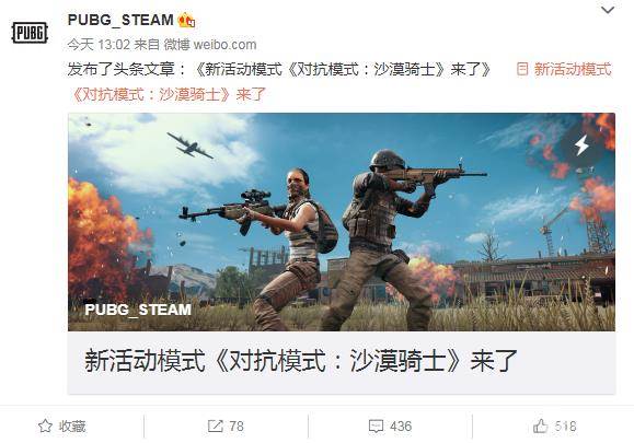 《绝地求生》Steam官博今天公布新活动模式《对抗模式:沙漠骑士》来了,在这个模式下, 玩家可以5人组队,在沙漠地图的安全区内进行战斗,这个模式没有空投和轰炸区,玩家死亡也可以在40秒后重新进入游戏,率先获得200分的队伍获胜。