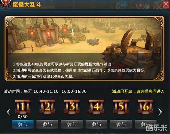 在活动时间内,符合条件并参加活动的玩家可变身为各式怪物使用临时的技能进行战斗,以击杀其它玩家为目标,当击杀积分达到相应条件时可变身为更高级的怪物并开启相应的技能,让我们来萌在怪物大乱斗里面吧,这里不靠装备,靠的是技术和操作!
