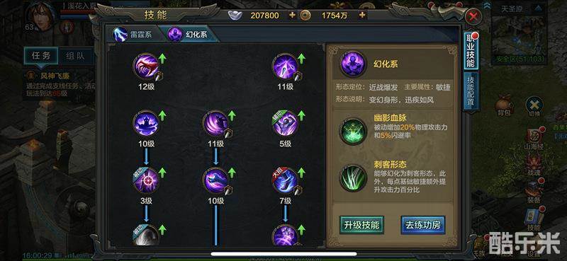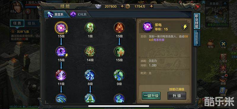 职业技能:法师技能分为雷霆系和幻化系两个系列。