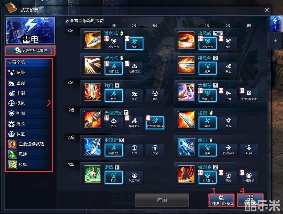 不过也不用担心原来非本属性的控制技能不可选,本次改版后,控制类技能是所有属性天赋目录中都有设计的内容,即使原来属于另外一个系的控制技,这次在本系中也有相应变化,不会因为改变主属性导致控制技能缺失。(比如灵剑【2】键雷系单体双眩晕技能,在更改为风系后,同样眩晕效果的技能为【V】键风月斩群体双眩晕技能)
