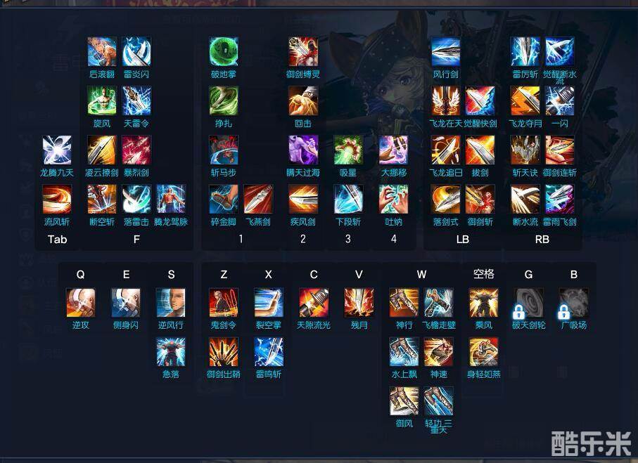 【4】查看图标按钮,点击后会弹出另一个页面(如下图),是用按键分类的技能图表,作为一名老手,我认为许多技能实际上这样来看才比较清楚(由于前一个目录是按照习得等级排序,且无法变更排序,满级玩家再去看这个东西就有些麻烦了)。