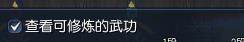 在技能检索界面中,第一列【查看可修炼武功】默认是勾上的,此时技能页面只会显示可以被选择更改的技能,在此功能下,没有显示的技能都是无法被更改天赋的技能,只有唯一的功能。(如下图)