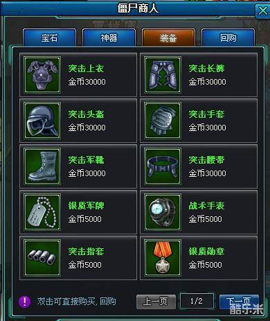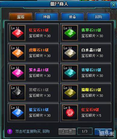 可在此进行宝石兑换、神器兑换、装备购买以及出售回购操作,每个主城都有僵尸商人