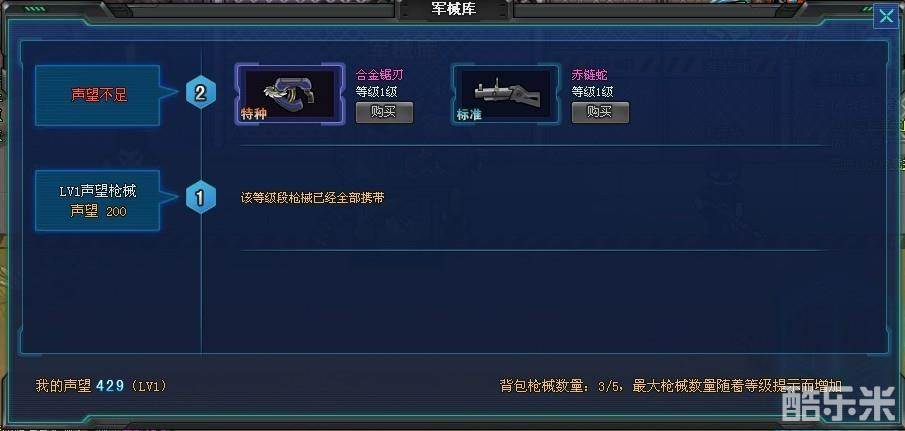 可在此购买枪械,但是需要达到对应的声望等级及声望,才能购买