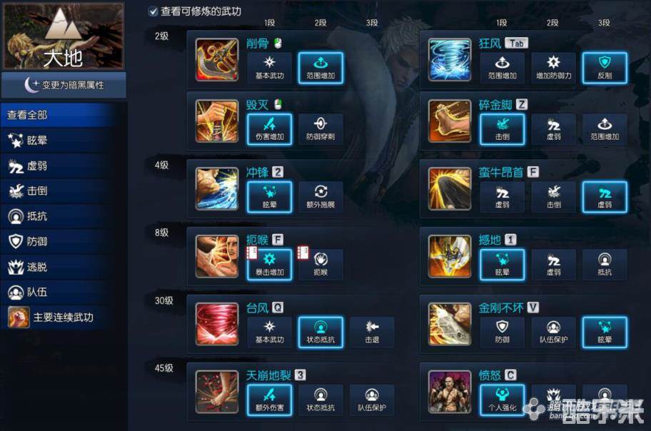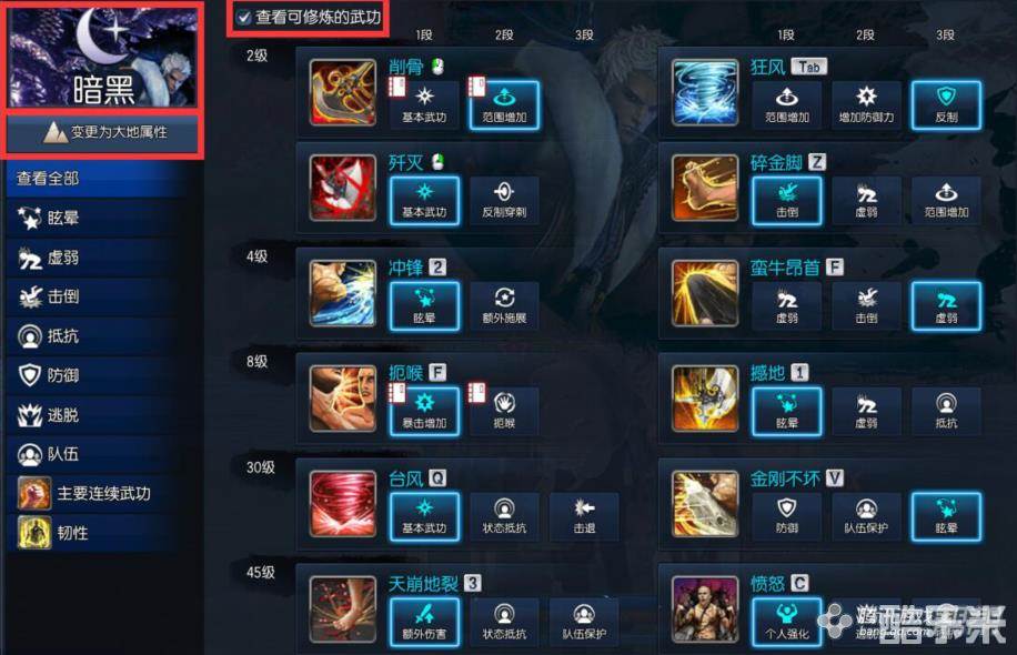 本次职改优化后,加点只需修改12项技能,其他均为默认只有1段,伤害根据你所选属性变更为暗系或者大地。
