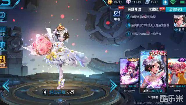 小乔的这款皮肤是情人节限定皮肤,特效台词方面都不错,收藏价值也是很高的,毕竟穿上婚纱的女英雄就2个。